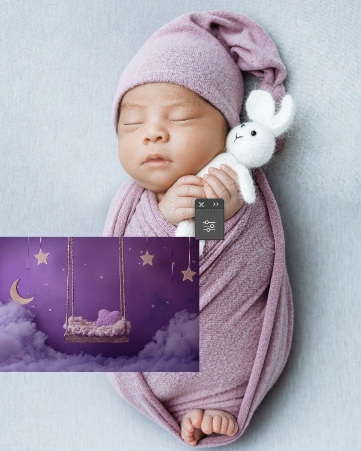 We cannot use photos showing half of the baby’s body for digital backgrounds. All images where the baby s not shown completely we can only use with simple backgrounds. Below is an example of such a photo.